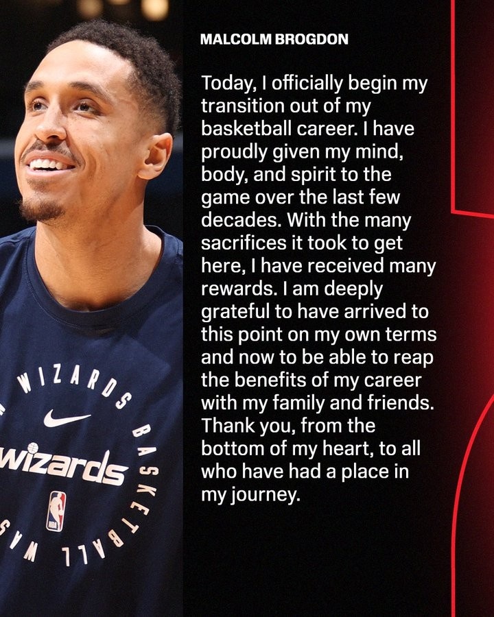 Theo phóng viên nổi tiếng Shams, tin nóng hổi, người bảo vệ Knicks Brogdon đã thông báo qua ESPN rằng anh ấy đã quyết định giải nghệ sau chín mùa giải ở NBA.