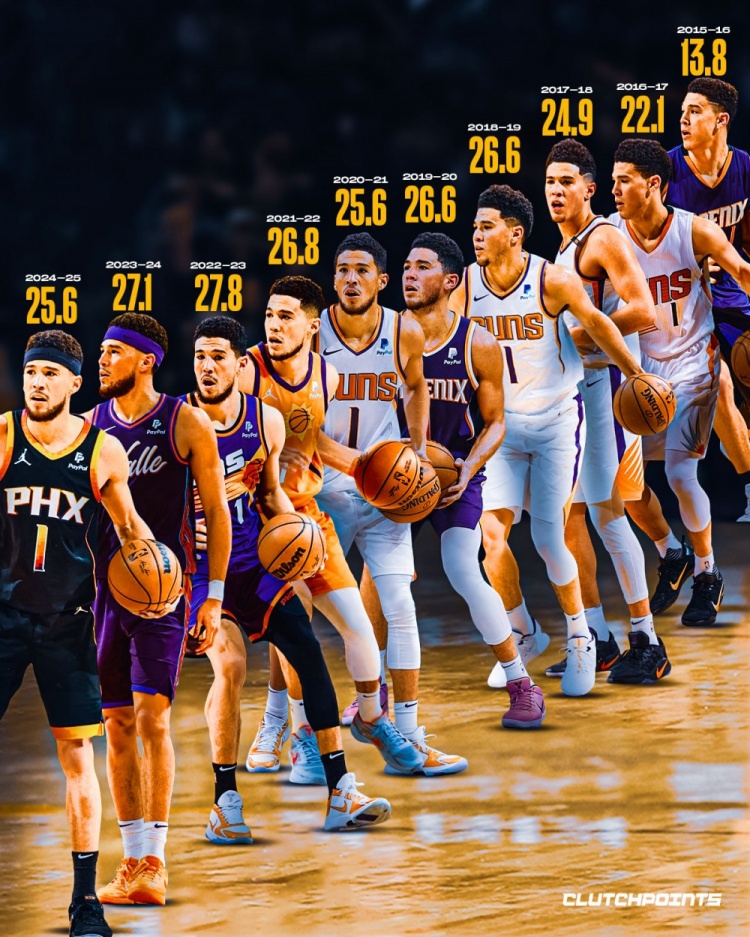 Danh sách ghi bàn trung bình của Booker trong mỗi mùa giải trong sự nghiệp! 25+ trong 7 mùa liên tiếp!