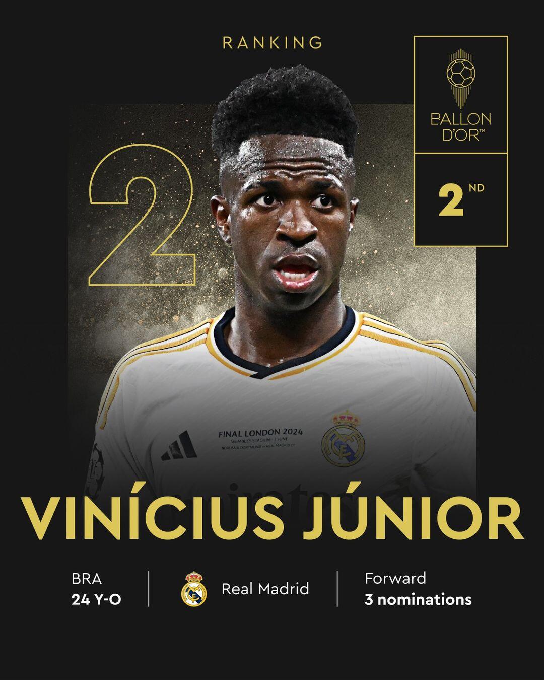 Trong bối cảnh của Quả cầu vàng, Vinicius biết rằng năm 2024 là cơ hội tuyệt vời của anh ấy. Giải thưởng này có thể đã đăng quang sự nghiệp của anh ấy, nhưng bây giờ nó dường như nằm ngoài tầm với. Với MBAPPE, một đồng đội mạnh mẽ, cơ hội chiến thắng của anh ấy đã giảm mạnh: mặc dù cả hai có thể cạnh tranh cho cùng một danh hiệu của đội, MBappe luôn có thể ghi được nhiều mục tiêu hơn và tạo ra ảnh hưởng truyền thông lớn hơn, và các quy tắc của bóng đá và giải thưởng dường như không còn được anh ấy ủng hộ.